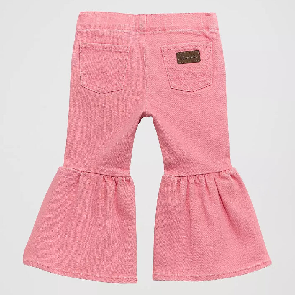 There’s no denying how cute your cowgirl will look in this Wrangler’s Little Girl’s Vibrant Ruffle Leg Flare Jean. These flares are crafted from a soft cotton blend with a hint of stretch for extra comfort. They feature an elastic waist for easy changing, ruffles along the back for extra flair, and ruffled legs that will have her ready for the rodeo.