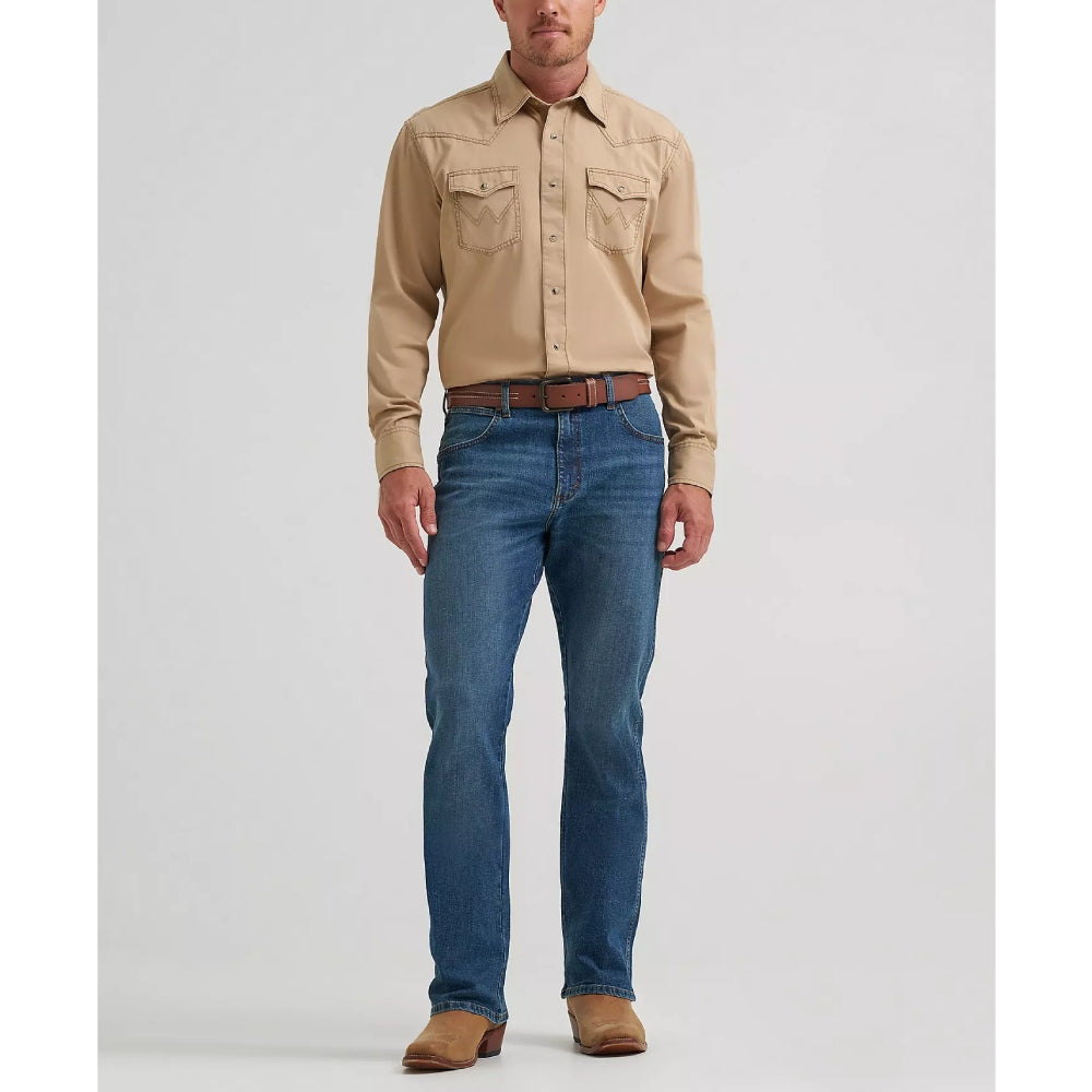 Wrangler® Retro® jeans are a modern take on Wrangler’s authentically Western jeans. Made for country rock stars, rodeo ropers, and those who just happen to have great taste, Wrangler’s men's retro bootcut jeans are a versatile style made to suit any occasion. They offer a comfortable mid rise, relaxed fit through the seat and thigh, and a leg opening that fits perfectly over your favorite pair of boots. Speaking to Wrangler’s Western heritage with a modern sensibility, Wrangler’s men's relaxed fit bootcut jeans are everything you want in a pair of jeans.