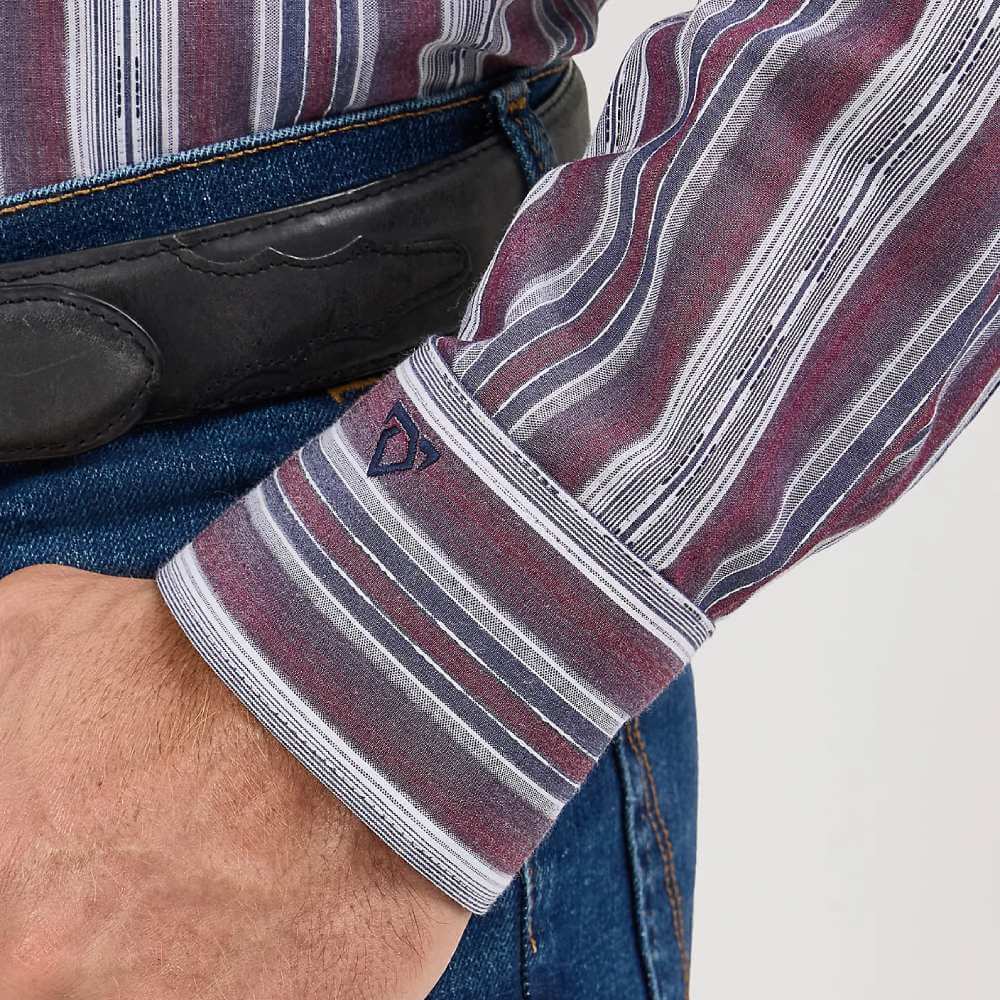 Unique Wrangler Mens Cody Johnson One Pocket Shirt Mauve Stripes. Look sharp while feeling ready for anything in our Cody Johnson One Pocket Button Down Shirt. Inspired and worn by CoJo himself, this collared shirt delivers comfort and style without compromise.
