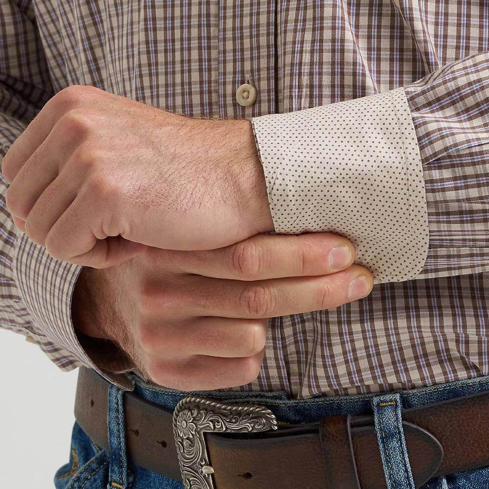 Essential Wrangler Mens George Strait™ Two Pocket Shirt. When it comes to casual style that rises to every occasion, nothings beats the George Strait™ Two-Pocket Button-Down Shirt. This long-sleeve button-down features a straight back yoke, two button-through pockets, adjustable cuffs, a curved hem, and a relaxed fit that feels roomy throughout. Best of all, it's woven from a comfortable cotton blend you can wear all day long.