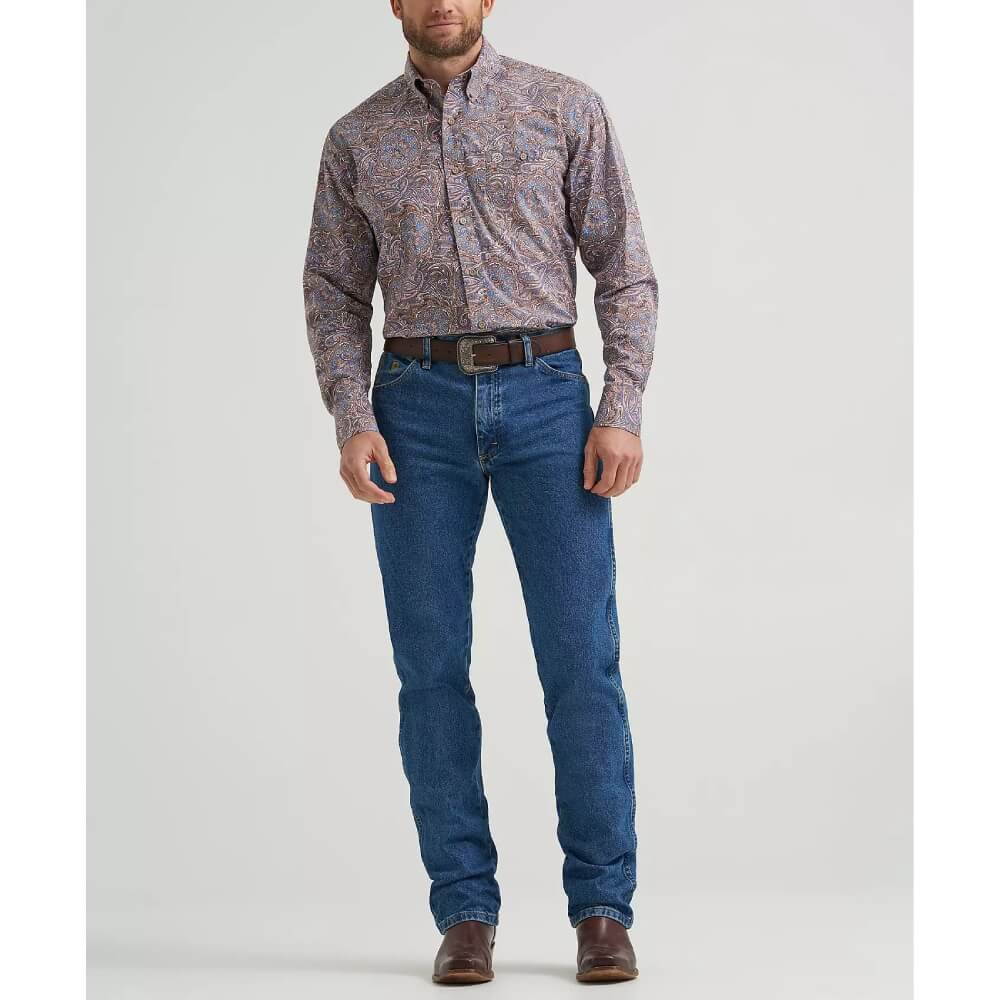 Take the spotlight in style wearing the George Strait™ One-Pocket Button-Down Shirt. This long-sleeve button-down features a straight back yoke, one chest pocket, and adjustable cuffs. With its relaxed fit, this classic collared shirt offers plenty of room through the shoulders and torso. Plus, it comes in a wide variety of colors and patterns.