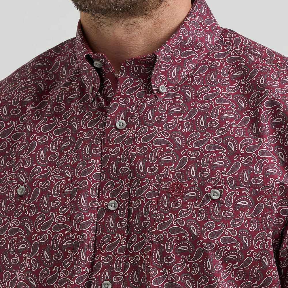 Handsome Wrangler Mens George Strait Stretch Shirt Wine.