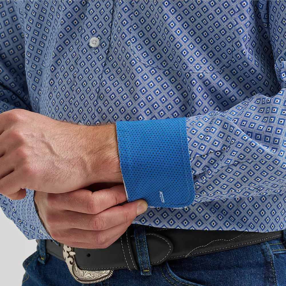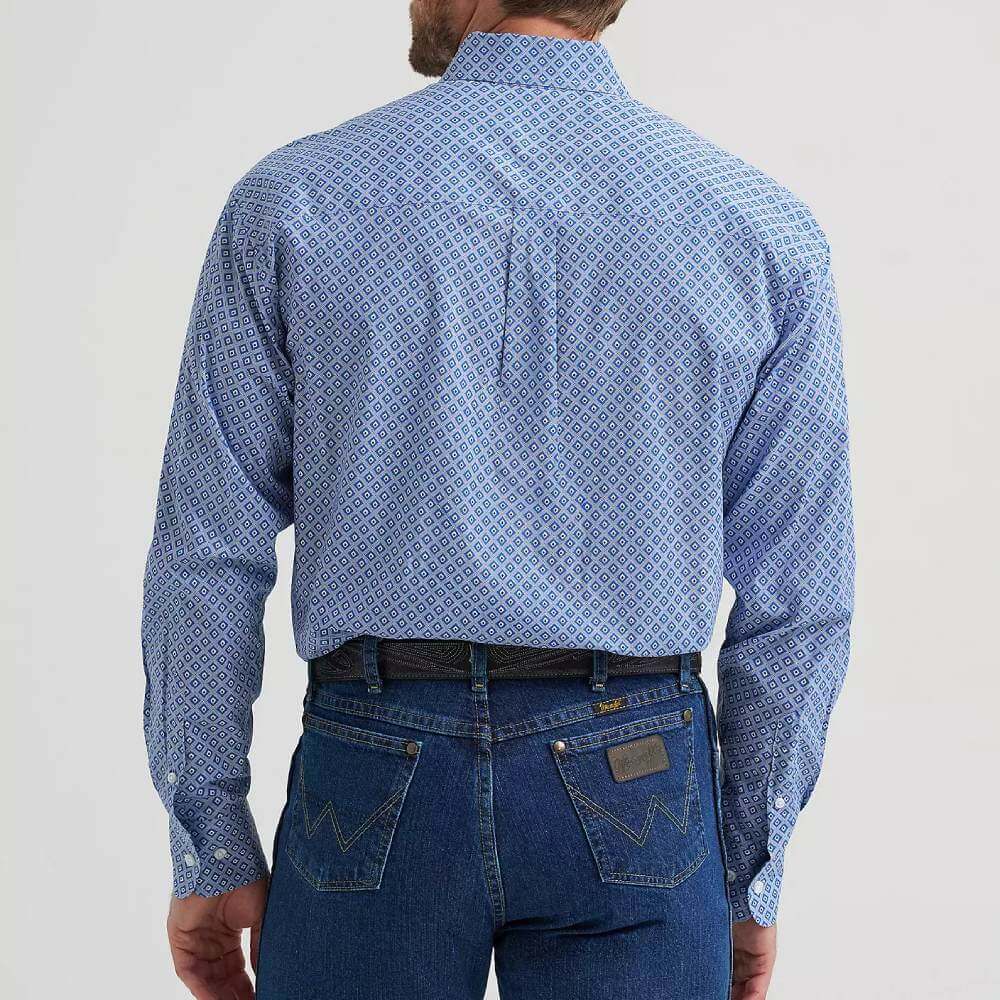 When it comes to casual style that rises to every occasion, nothings beats the George Strait™ Two-Pocket Button-Down Shirt. This long-sleeve button-down features a straight back yoke, two button-through pockets, adjustable cuffs, a curved hem, and a relaxed fit that feels roomy throughout. Best of all, it's woven from a comfortable cotton blend you can wear all day long.