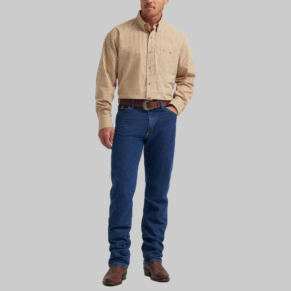 Handsome Wrangler Mens George Strait™ One Pocket Shirt. Take the spotlight in style wearing the George Strait™ One-Pocket Button-Down Shirt. This long-sleeve button-down features a straight back yoke, one chest pocket, and adjustable cuffs. With its relaxed fit, this classic collared shirt offers plenty of room through the shoulders and torso. Plus, it comes in a wide variety of colors and patterns.