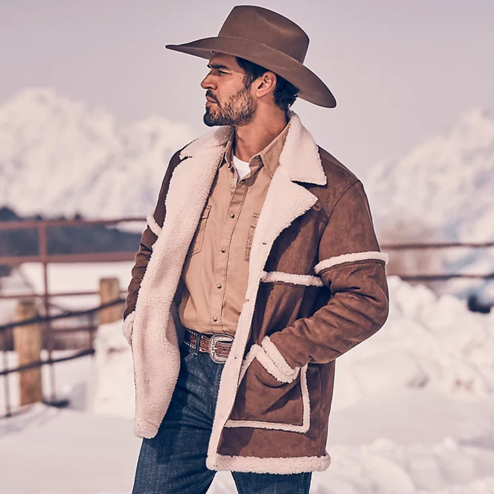 Leobardo Varela Wrangler Mens Sherpa Faux Suede Cowboy Jacket – 112336440