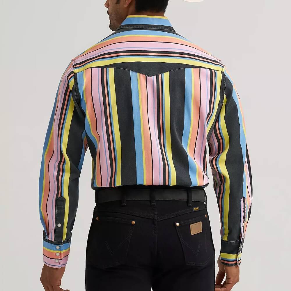 Can’t call it a comeback when the Wrangler® Brushpopper is just warming up. This vintage-inspired Western snap work shirt kicks any outfit into next gear with its bold and colorful stripes, and no two shirts are exactly alike. Crafted from cotton and cut in a regular fit, it offers comfort from season to season. Plus, you’ll have all those iconic details, including Western yokes from front to back, chest pockets with the signature ‘W’ embroidery, and pearl snaps for easy layering when you feel like it.