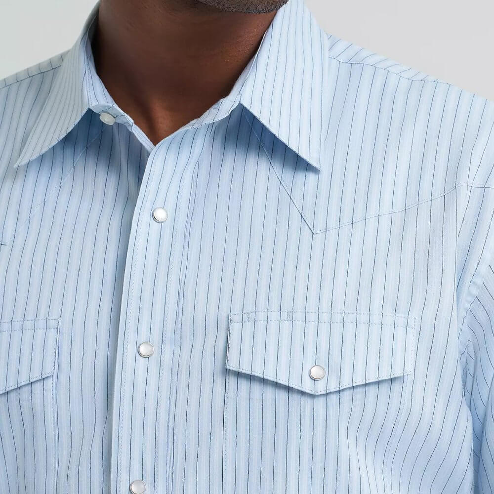 Combining the Western style you want with the care-free maintenance you deserve, this wrinkle-resistant snap shirt from Wrangler® is a clear choice for the busy cowboy. Authentically designed and carefully crafted, this classic Western snap shirt comes with all the iconic features you've come to appreciate, including a spread collar, pointed yokes, two snap flap pockets, and a pencil slot. Best of all, this long sleeve shirt is made of a comfortable cotton blend with a little bit of stretch, stain release, and a wrinkle-free finish. Wear this wrinkle resist snap shirt with a Wrangler jean for a look that gets you out the door at a moment's notice.