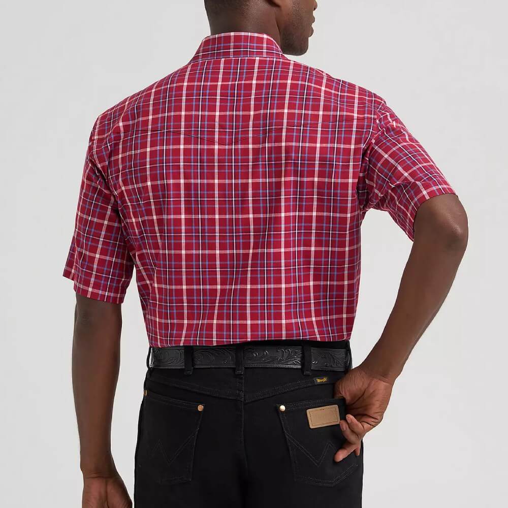 Combining the Western style you want with the care-free maintenance you deserve, this wrinkle-resistant snap shirt from Wrangler® is a clear choice for the busy cowboy. Authentic Western style teams up with an unbeatable wrinkle-resist finish for a shirt that's second to none. Western yokes, snap flap pockets with pencil slot and snaps round out the look.