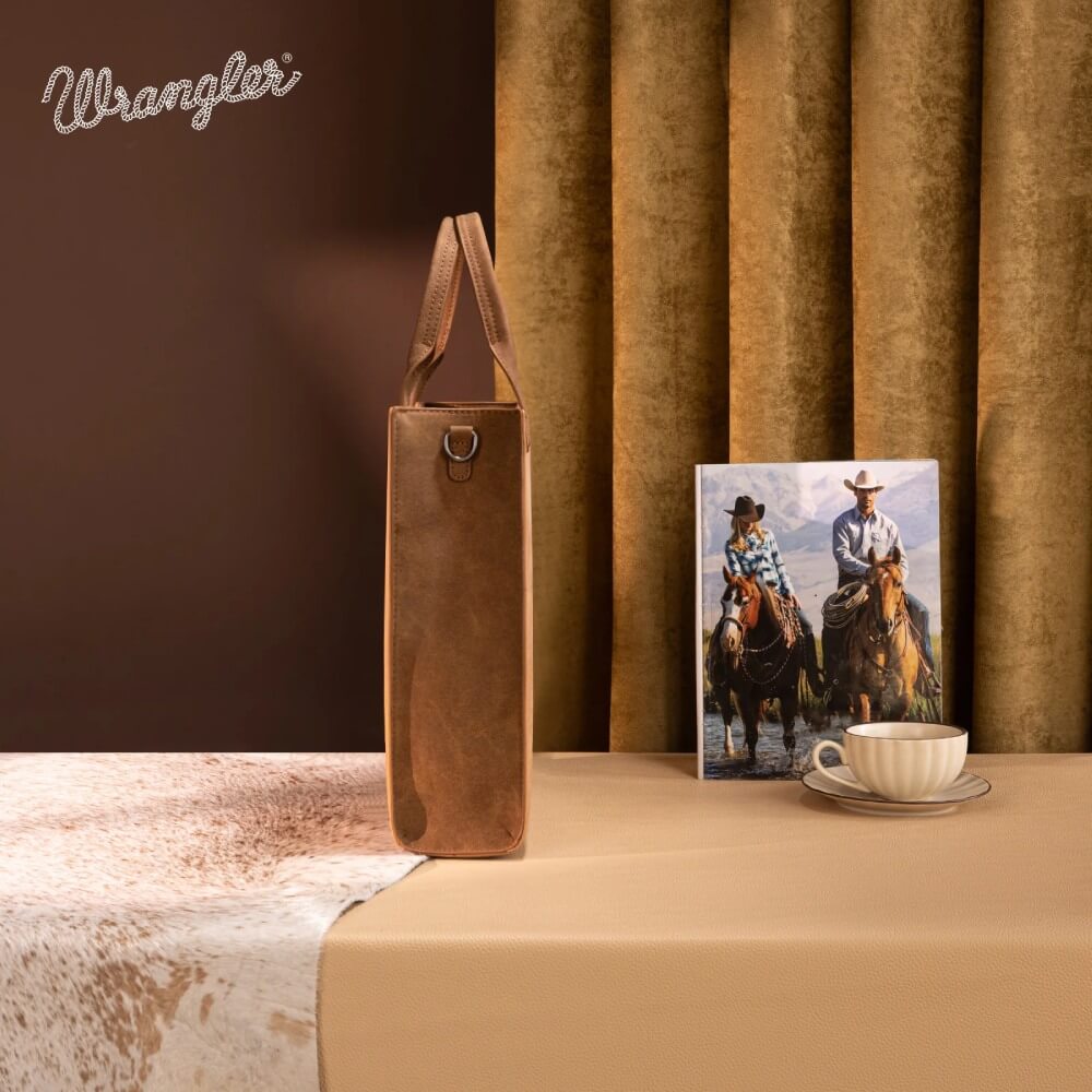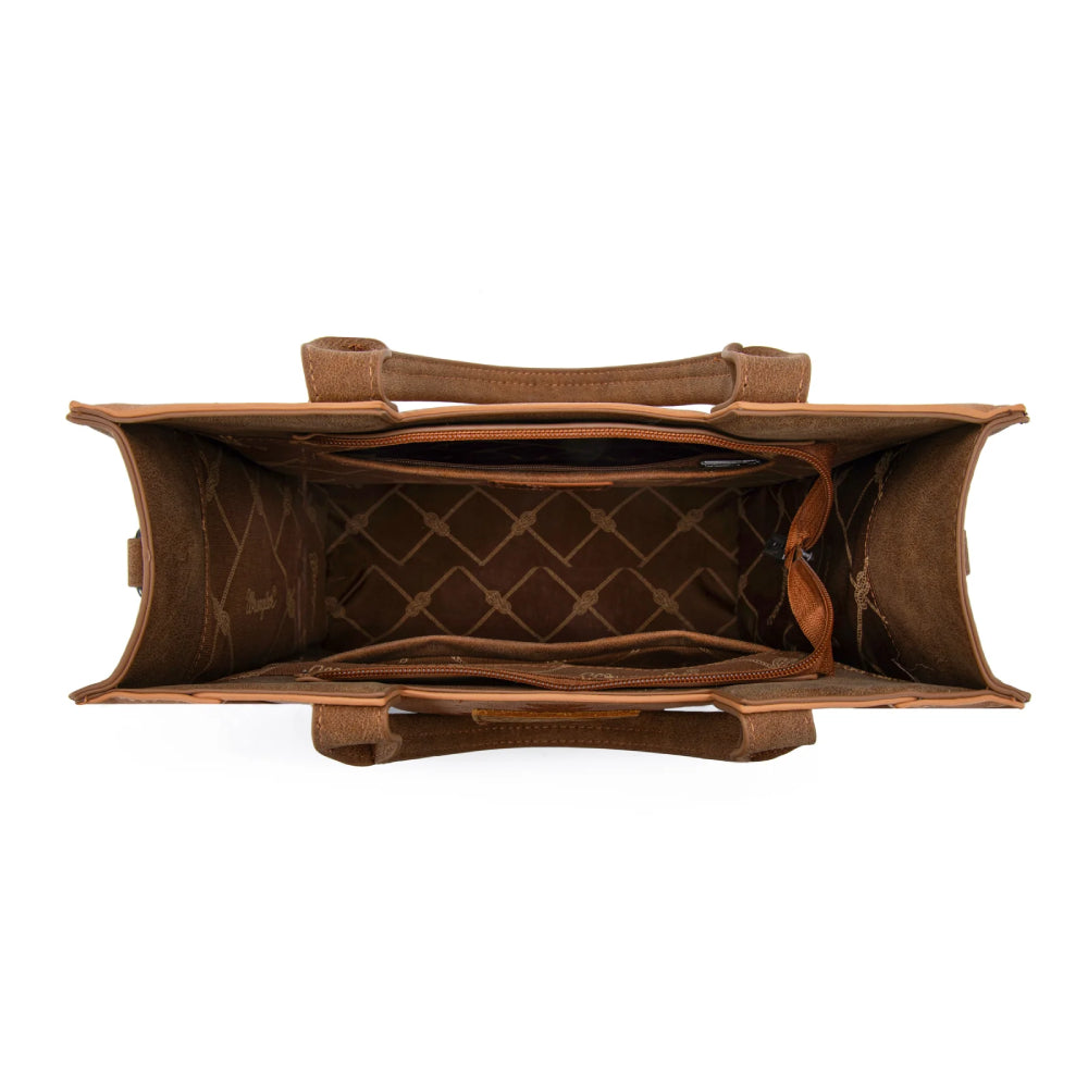 Essential Wrangler Womens Aztec Embroidered Tote Bag/Crossbody Brown.