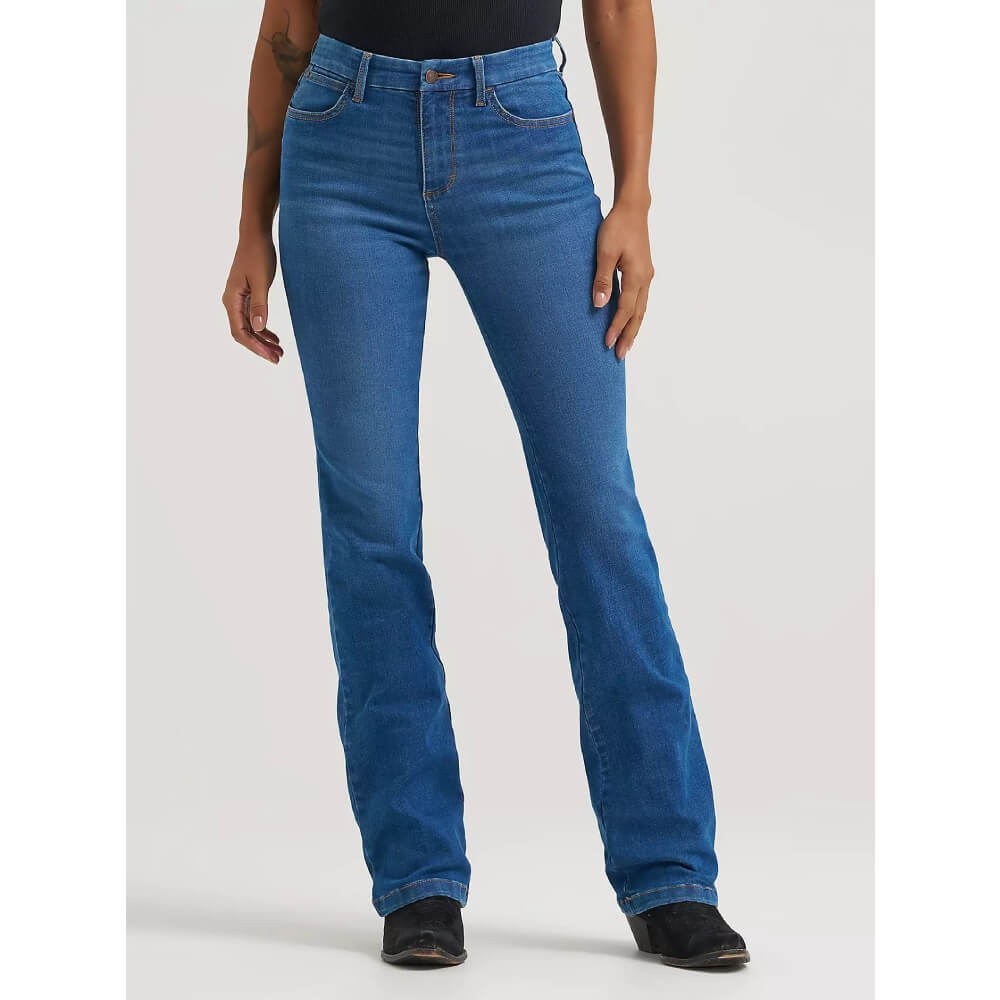 Welcome to a whole new frontier in fit. The Women’s Wrangler® Bespoke High-Rise Bootcut Jean gives your curves the spotlight they deserve. It comes with a contoured waistband that eliminates gapping and a silhouette that celebrates your shape from every angle. These bootcut jeans for women are crafted from a comfortable cotton blend with stretch for added flexibility and shape retention. They also feature all the iconic details: the five-pocket styling, the “W” embroidery, a logo patch, and authentic washes. The Wrangler Bespoke Collection features superior stretch and detailing, so finding the right fit is no longer a wild rodeo.