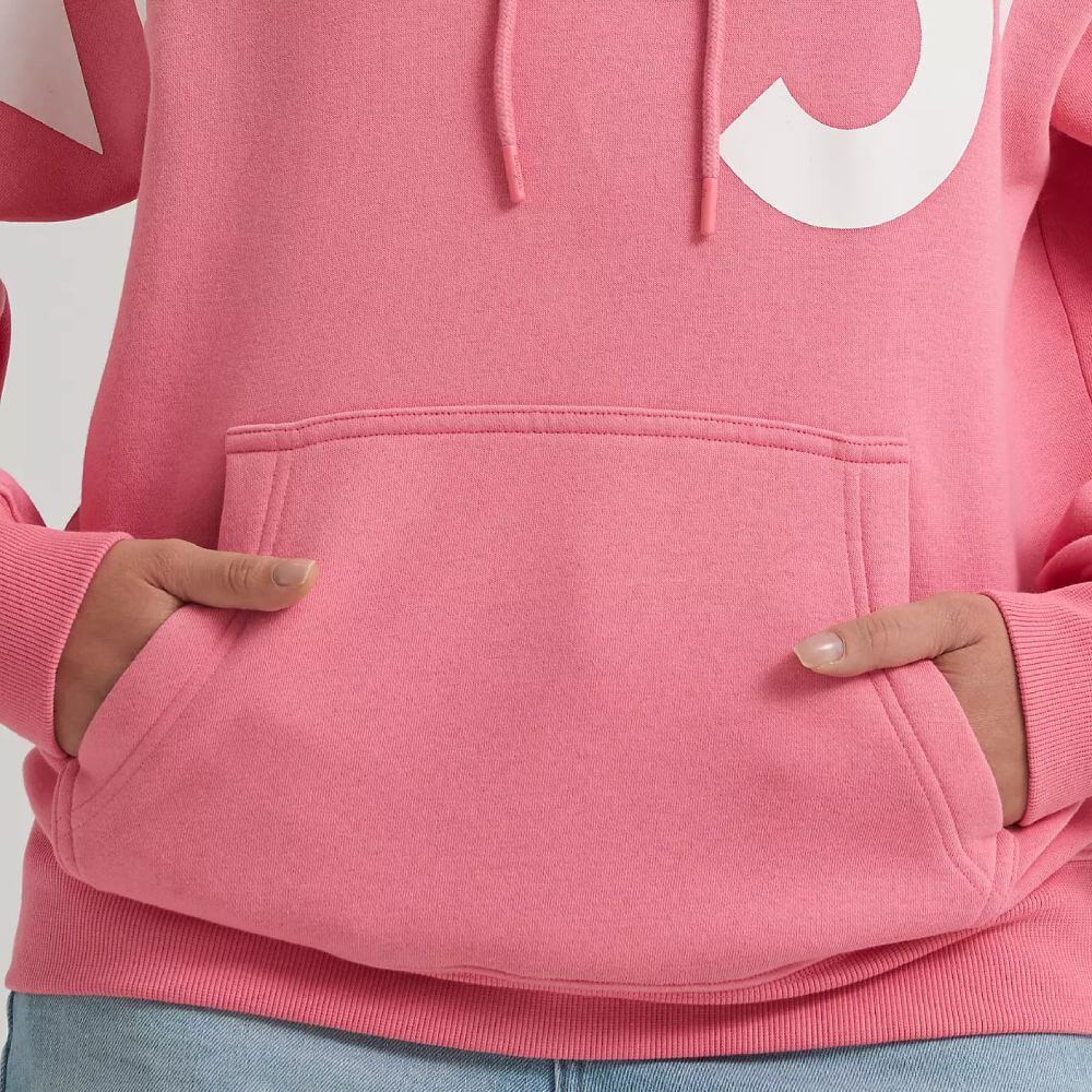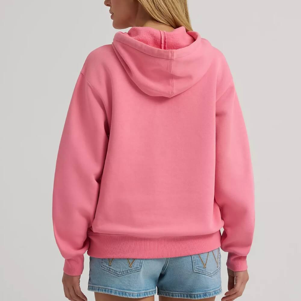 We’ll keep you cozy when cold weather strikes again with Wrangler’s Women’s Bold Logo Hoodie. This sweatshirt comes with the Wrangler® logo in large lettering for a bold black-and-white look that will turn heads and command respect. It’s crafted from a comfy cotton blend with a fleecy feel on the inside that will warm you up. It also comes with dropped sleeves, a drawstring at the hood, and a kangaroo pocket for your essentials.