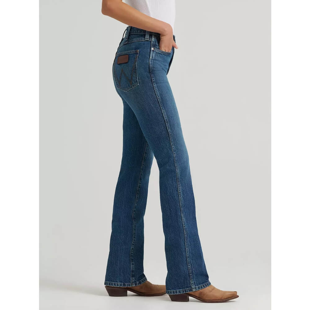 Trends may come and go, but the boot cuts are forever. Wrangler Women’s Retro® Bailey High Rise Bootcut Jean sets the bar high with a waist-nipping silhouette, a close fit through the thigh, and a slightly flared 17” leg opening that goes perfectly over boots. It’s crafted from cotton with just a subtle amount of stretch for comfort. Plus, the signature five-pocket styling, “W” stitching, and rope logo patch deliver the Western authenticity you want.