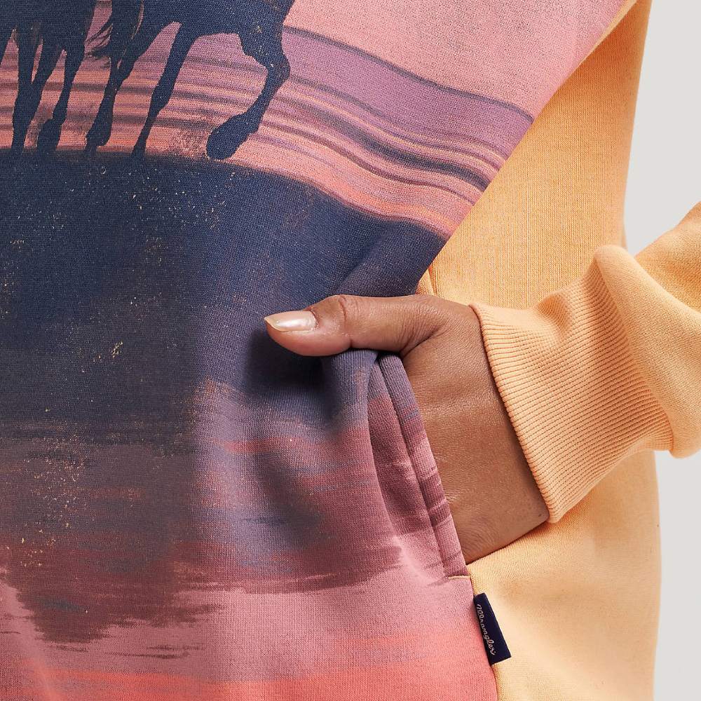 Cozy with some cowgirl flair, Wrangler Women’s Retro® Western Quarter Zip Sweatshirt is sure to warm up any look. This regular fit sweatshirt is crafted from cotton and fleece for extra comfort when cooler weather comes. It also features a 1/4 zip opening for versatility, a kangaroo pocket, and Western-inspired styling.