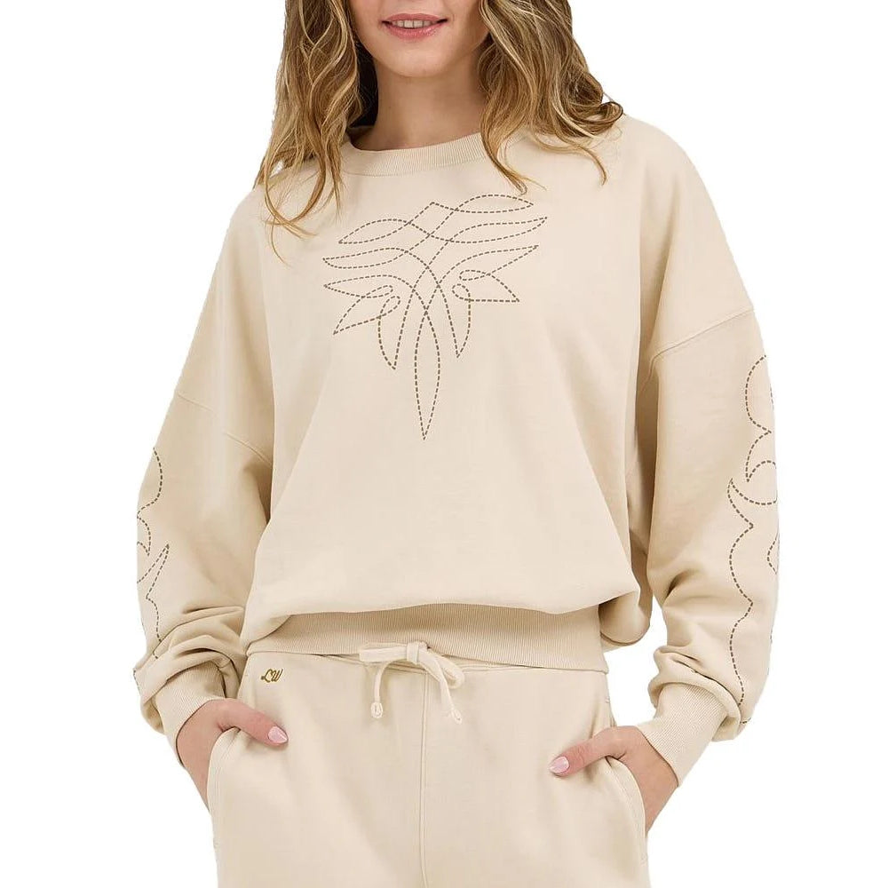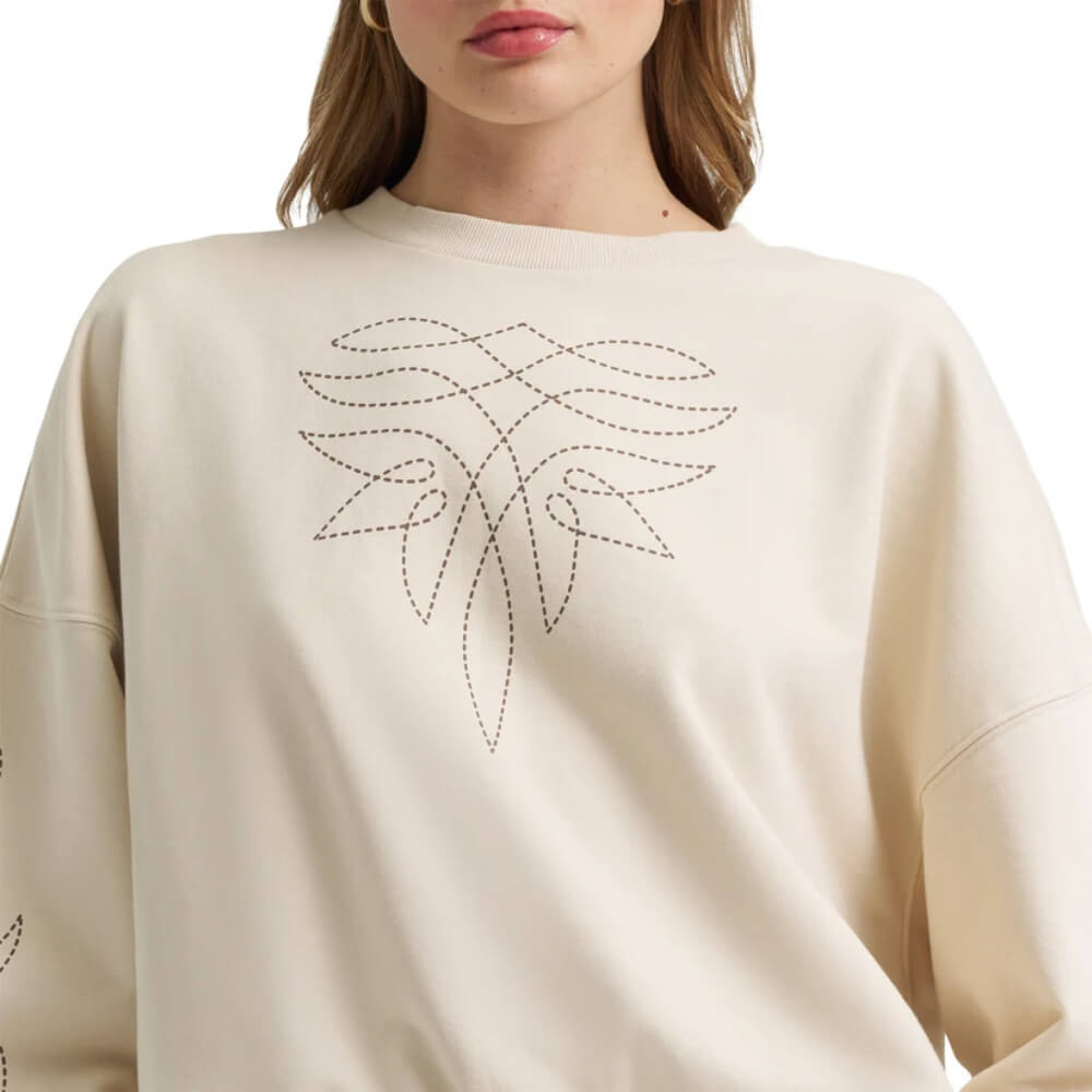 Embrace the spirit of country style with this cream-colored sweatshirt from Wrangler's exclusive Lainey Wilson collection. Crafted from a comfortable cotton-polyester blend, this outerwear piece delivers warmth and durability for everyday wear. Perfect for layering or standing alone, it's an essential addition to any western wardrobe