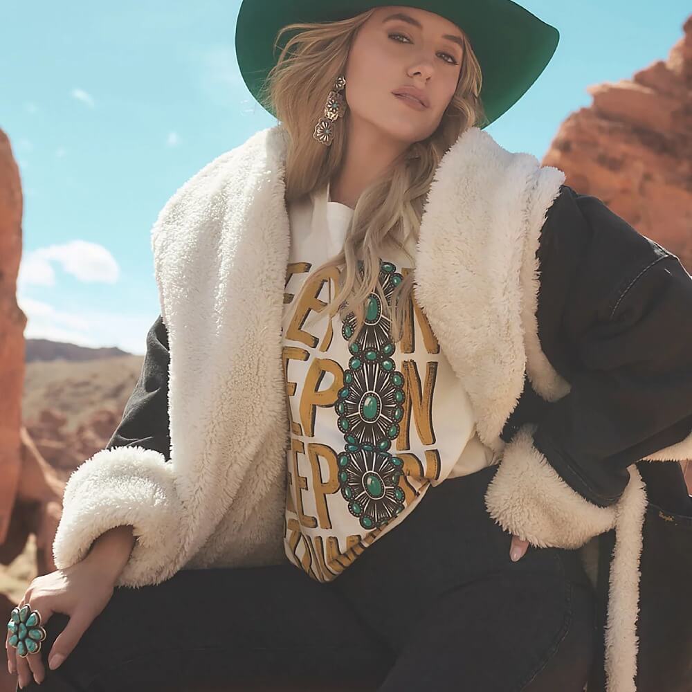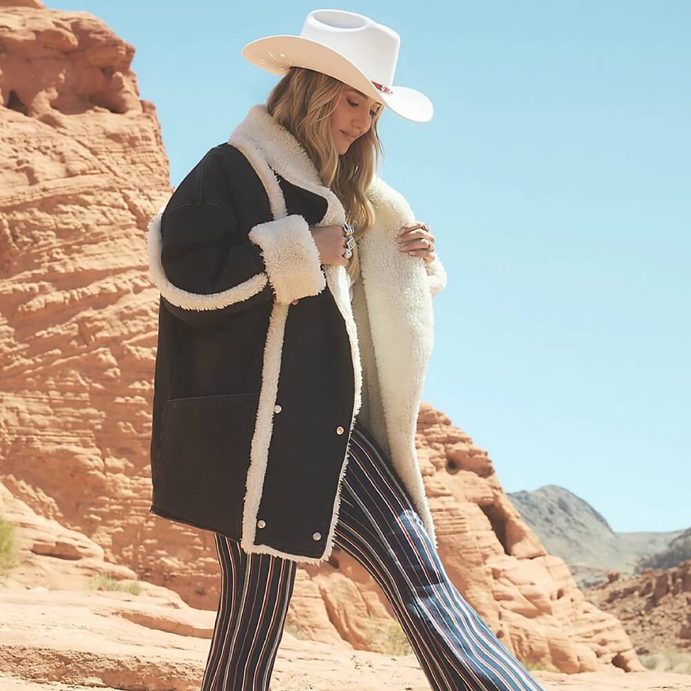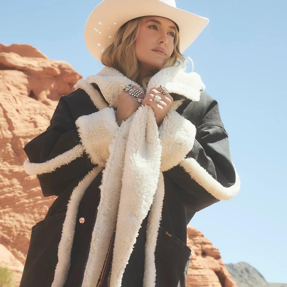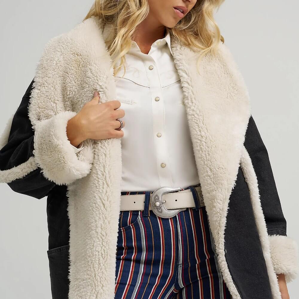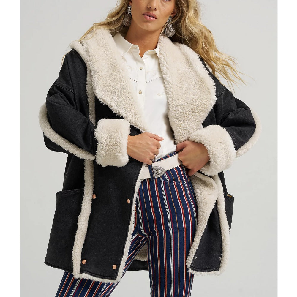 Unique Wrangler x Lainey Wilson Womens The Iconic Lainey Coat Washed Black. Owning the spotlight, blazing new trails. That’s exactly what you’ll do in this Wrangler® x Lainey Wilson Washed Black Denim Coat. Perfect for cozying up, it features an oversized fit and dropped shoulders for a lived-in look and feel. It's crafted from a comfortable cotton blend with just a hint of stretch and a black denim wash that will go with everything in your closet.