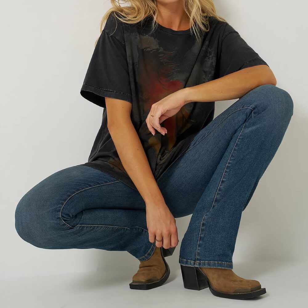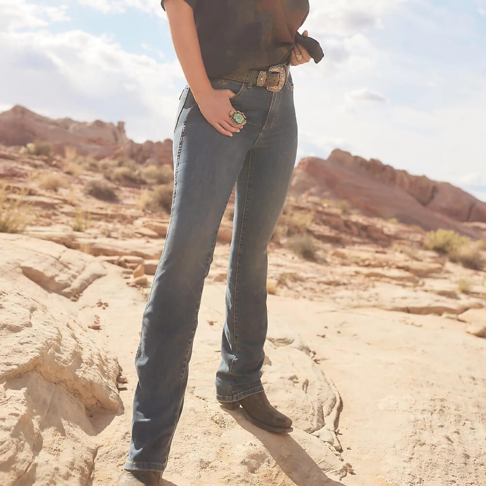 Authentic Wrangler Womens x Lainey Wilson Boot Huggers Jeans. Some jeans were made for owning the spotlight. And that’s just what you’ll do in the Wrangler® x Lainey Wilson Boot Huggers.
